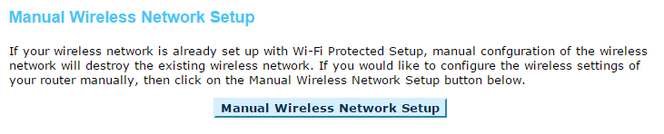 Klik op Manual Wireless Network Setup en dan ziet u het volgende scherm :